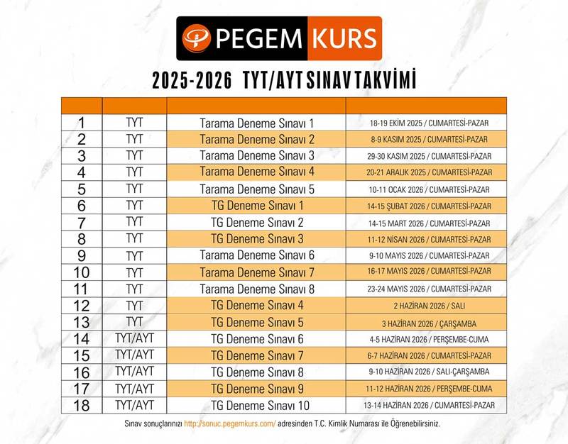 2025-2026 TYT-AYT Türkiye Geneli Sınav Takvimi